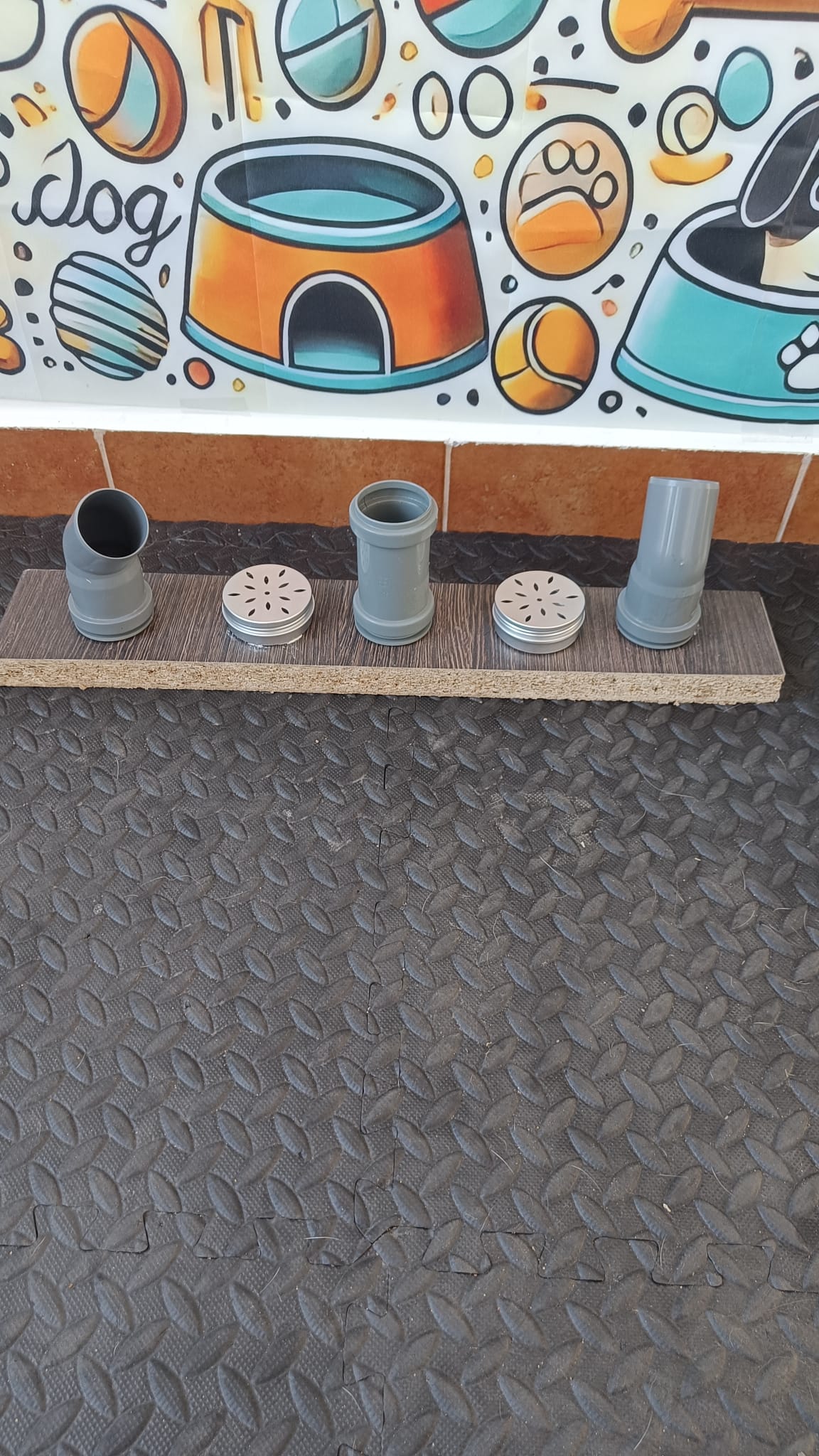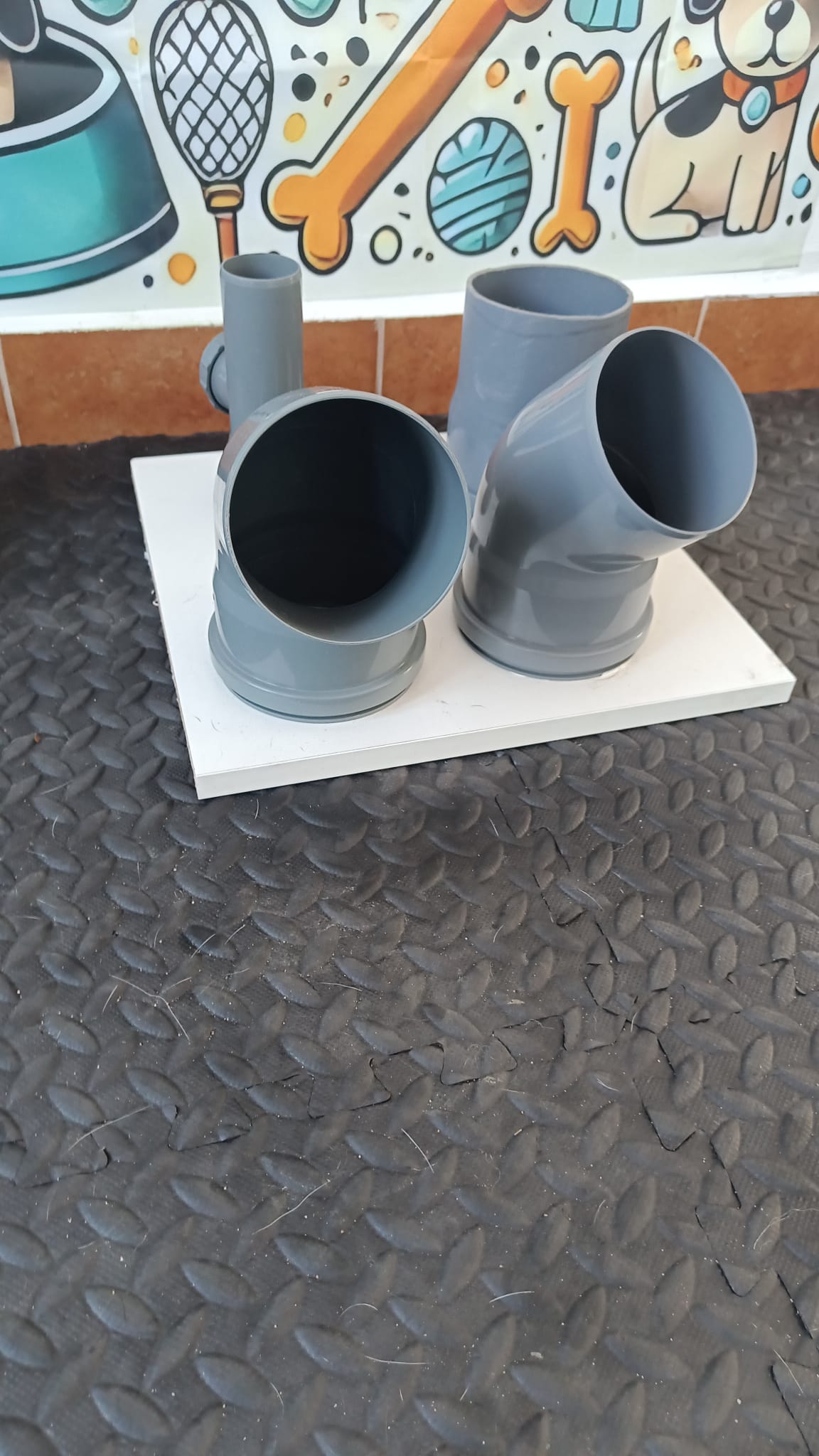 Ręcznie wykonany zestaw PVC rur do ćwiczeń węchowych i noseworku. Rury są podnoszone dzięki czemu w łatwy sposób pies dostaje smaczka.